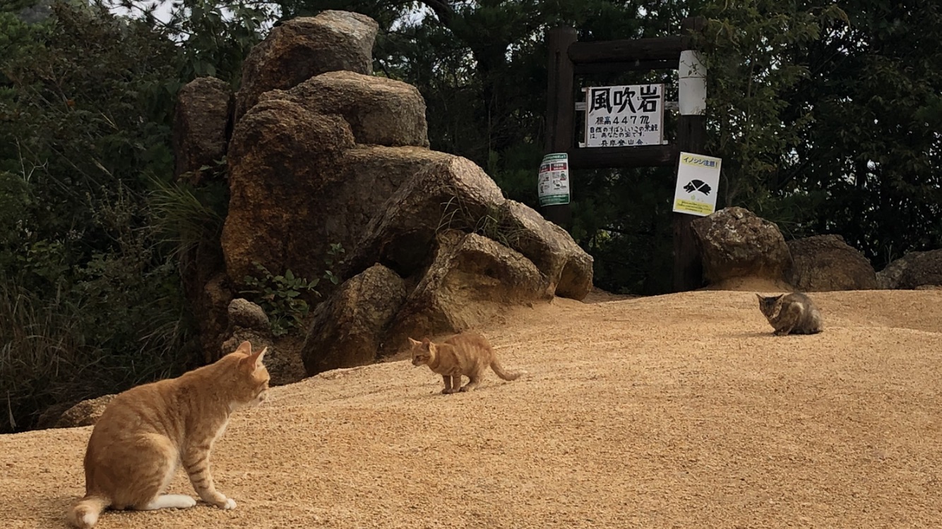 六甲山はイノシシもいますし、猫たちのためにも食べ物をむやみに与えないようにしましょう。